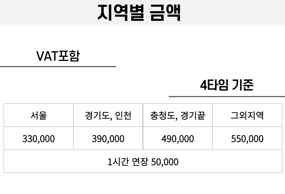 3일 이상 진행 시, 조금 할인된 금액으로 가능합니다.