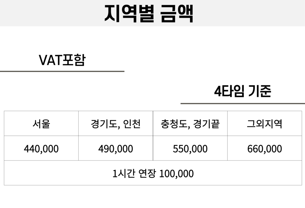 3일 이상 진행 시, 조금 할인된 금액으로 가능합니다.