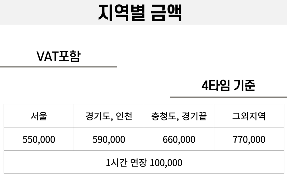 3일 이상 진행 시, 조금 할인된 금액으로 가능합니다.