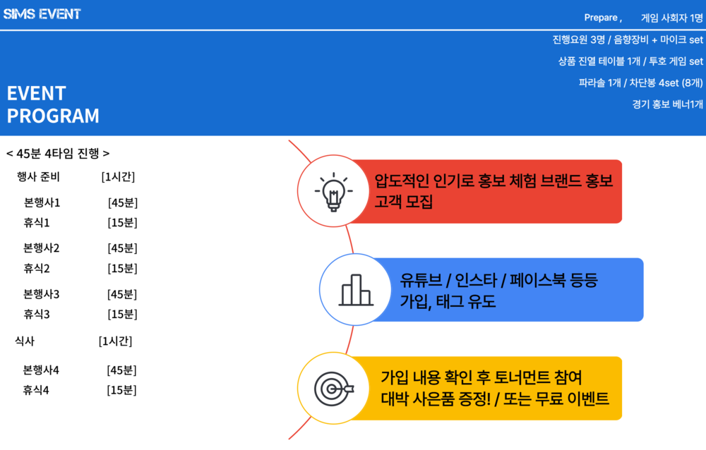 행사요일 ( 월 / 일 ) & 행사시간 5시간 (식사시간포함)