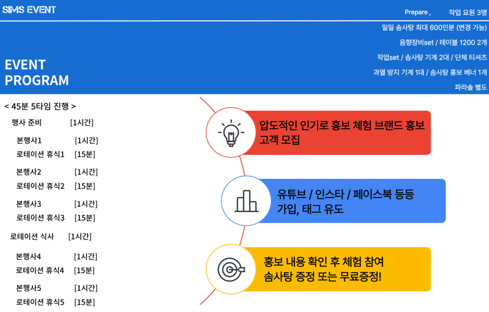 행사요일 ( 월 / 일 ) & 행사시간 5시간 (식사시간포함)