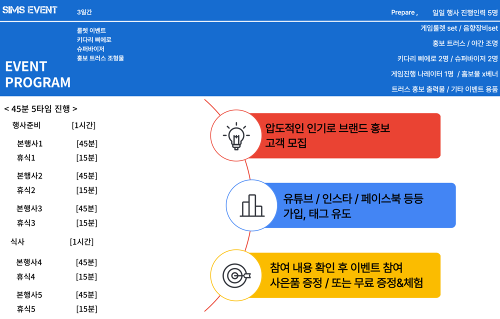 일일 6시간 3일 간 행사 진행 입니다.