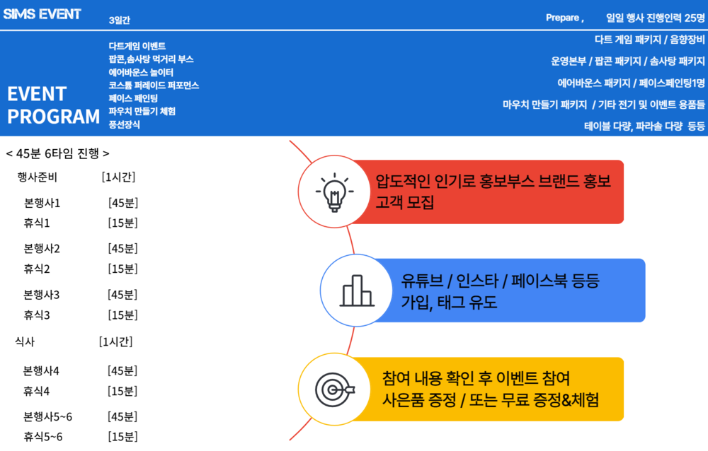 일일 6시간 3일 간 행사 진행 입니다.