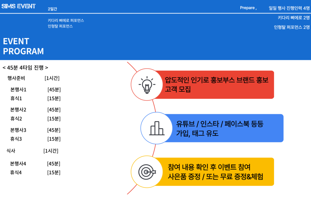 일일 4시간 2일 간 행사 진행 입니다.
